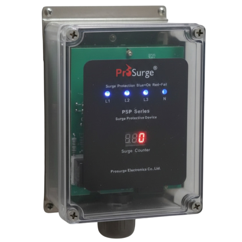 •Supresor de transientes de sobrevoltaje Prosurge, patentado con tecnología de protección térmica MOV (PTMOV) SCCR 200kArms como el componente principal del equipo