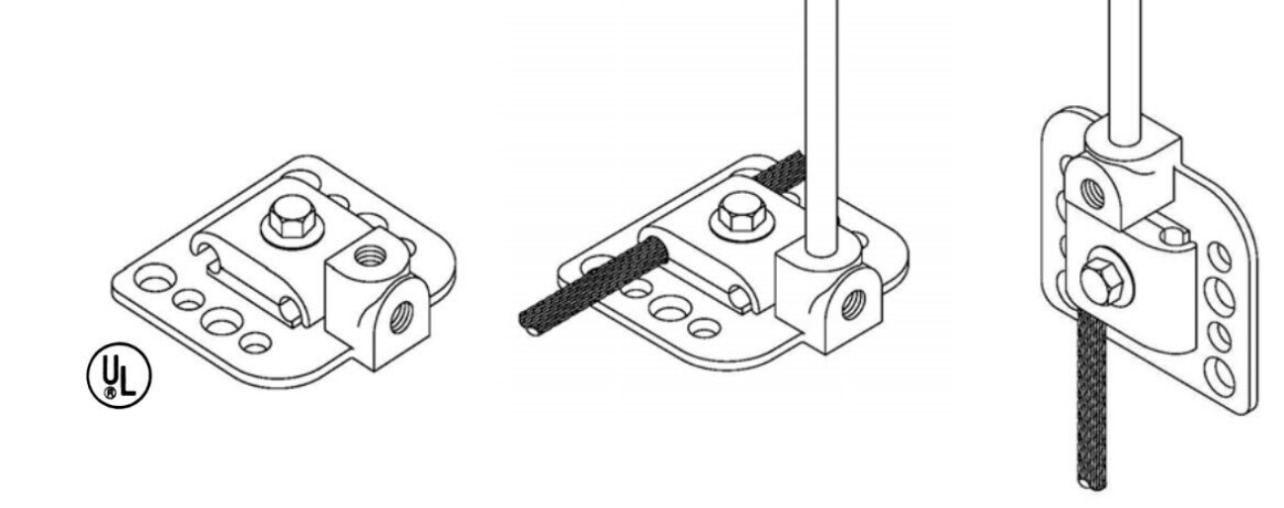 Base Vertical-Horizontal Pararrayos punta franklin UL, en cobre y aluminio PLP.